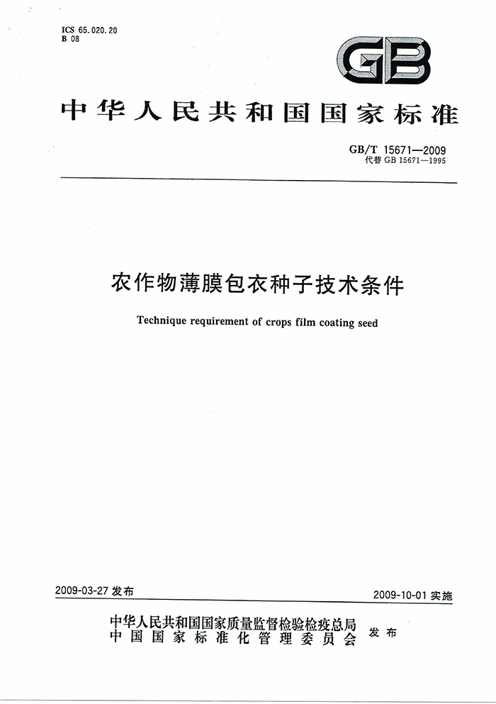 GB/T15671-2009農(nóng)作物薄膜包衣種子技術(shù)條件國(guó)家標(biāo)準(zhǔn)